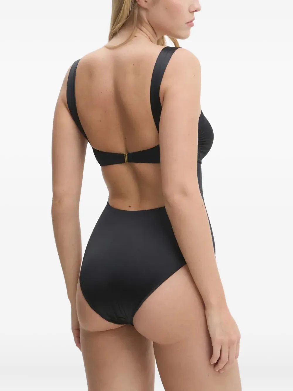 zwart uitgesneden design mouwloos goudkleurige versiering Zwemkleding moet over je eigen kleding worden aangepast.