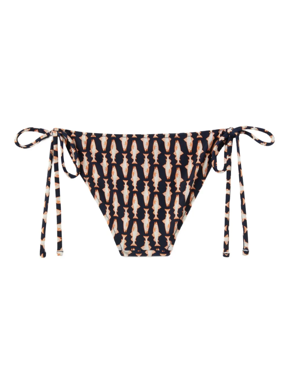 donkerblauw visprint gestrikte zijkanten minimale dekking Zwemkleding moet over je eigen kleding worden aangepast.