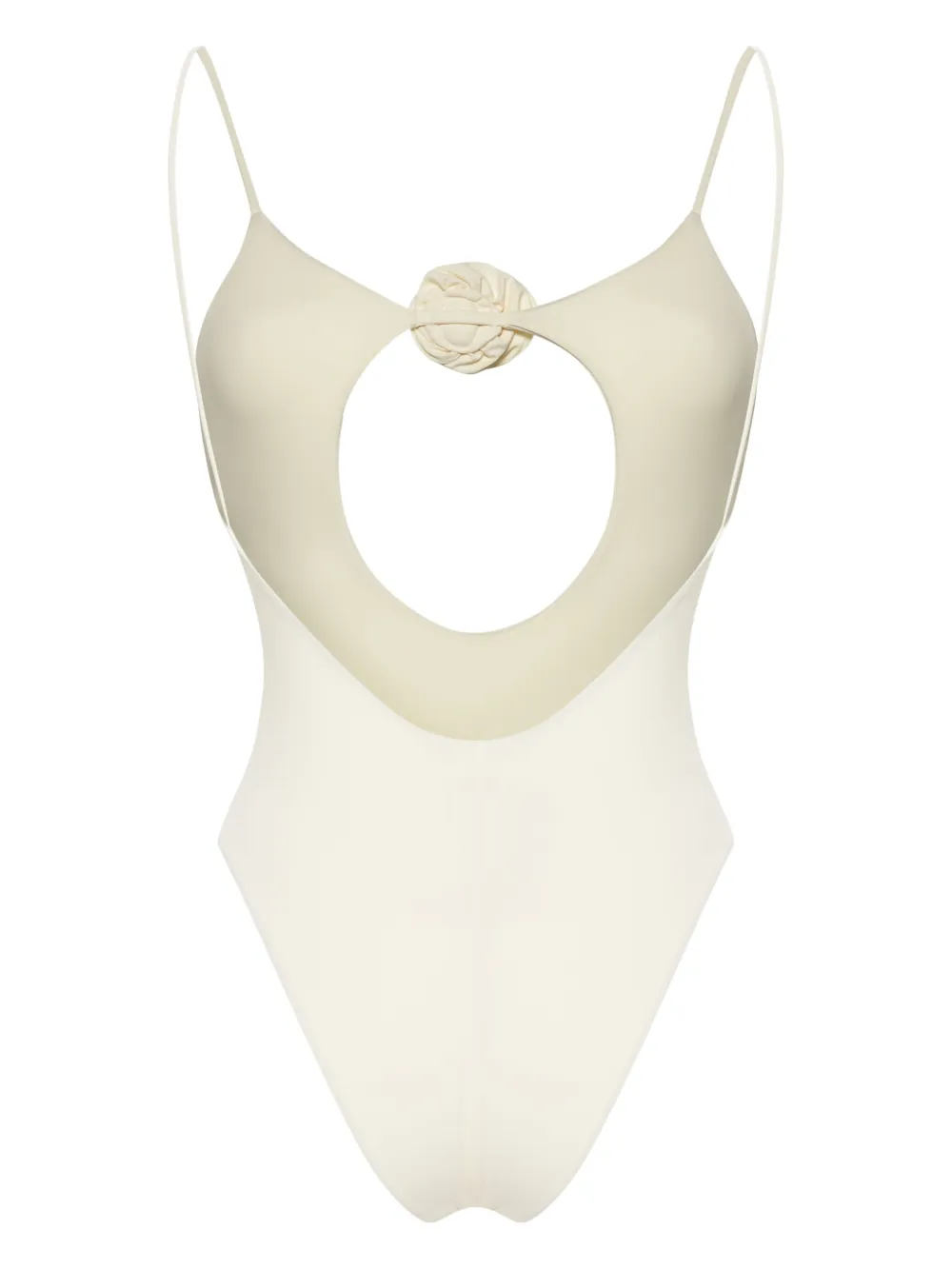 ivoorwit stretch design bloemenpatch uitgesneden detail vierkante hals slip-on stijl spaghettibandjes open hiel Zwemkleding moet over je eigen kleding worden aangepast.