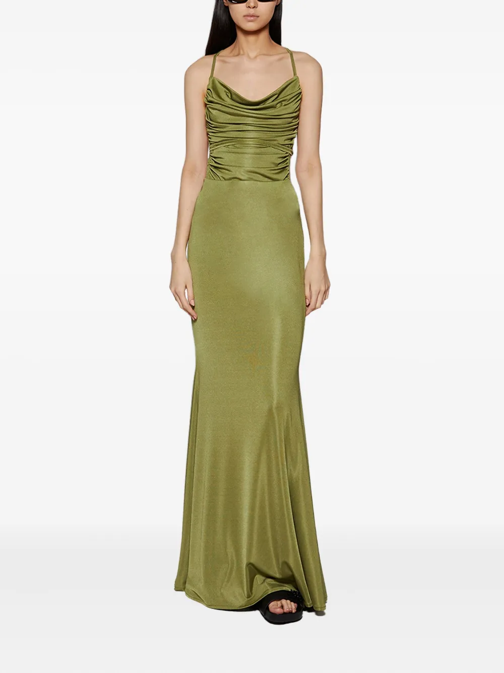 olijfgroen ruchedetails gekruiste bandjes trekkoord Zwemkleding moet over je eigen kleding worden aangepast.