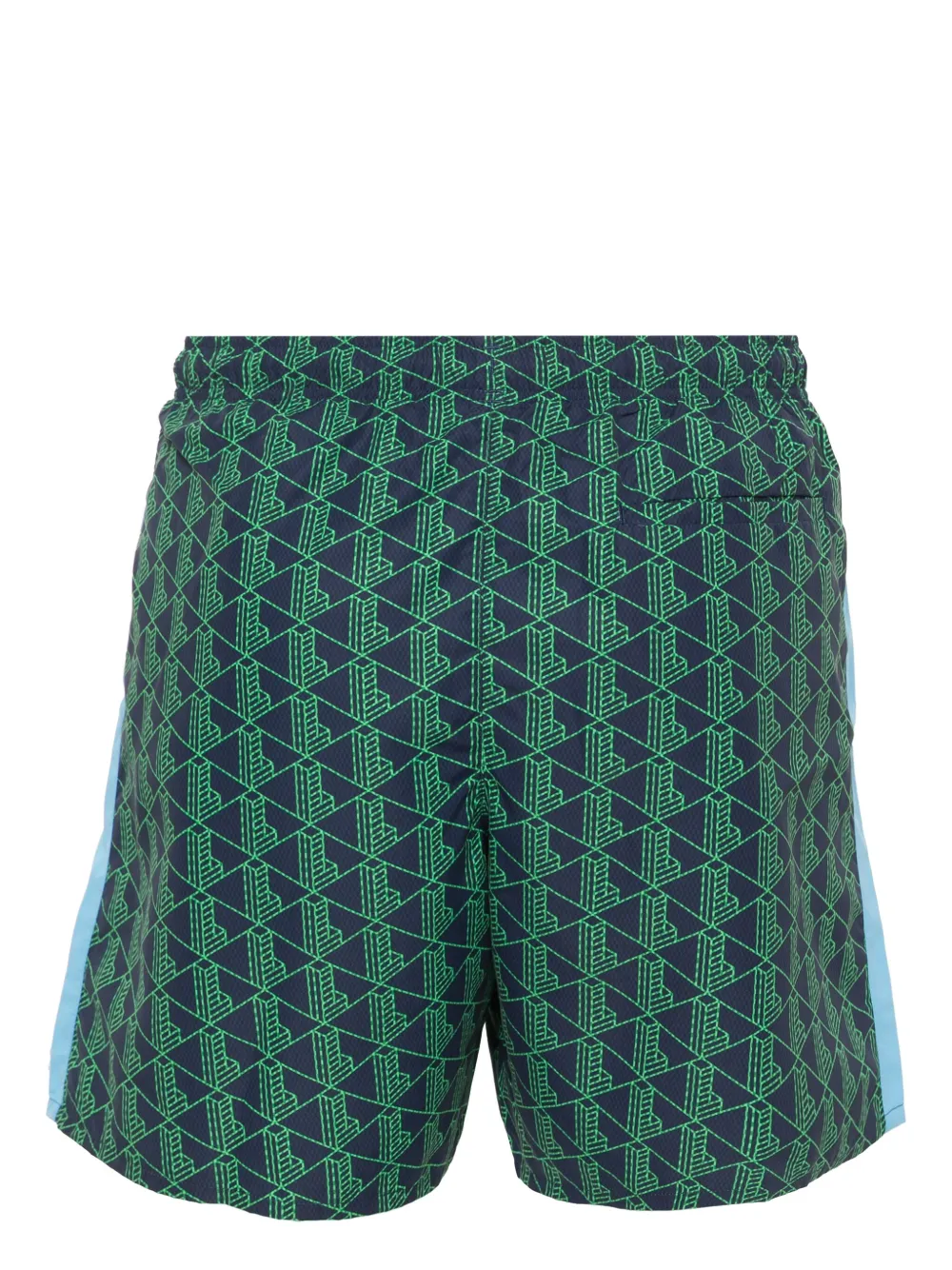 lichtblauw/middernachtblauw technische jersey monogramprint logopatch aan de zijkant zijstreep mid waist dijlengte steekvakken aan de zijkant paspelzak aan de achterkant mesh voering elastische tailleband met trekkoord Zwemkleding moet over je eigen kleding worden aangepast.