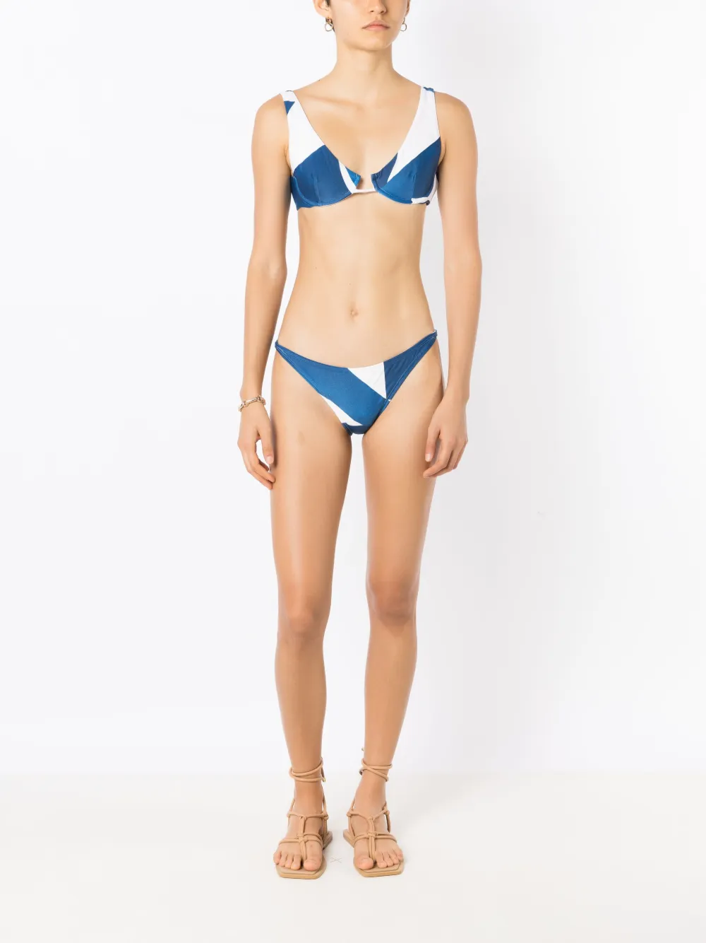 Stretch design, abstract patroon en elastische tailleband. Zwemkleding moet over je eigen kleding worden aangepast..