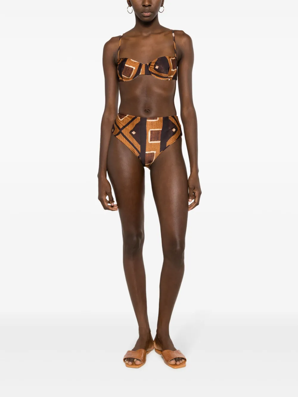 Bruine suiker, veelkleurig, stretch design, geometrisch patroon, balconette stijl, beugelbeha, verstelbare spaghettibandjes en sluiting aan de achterkant. Zwemkleding moet over je eigen kleding worden aangepast..