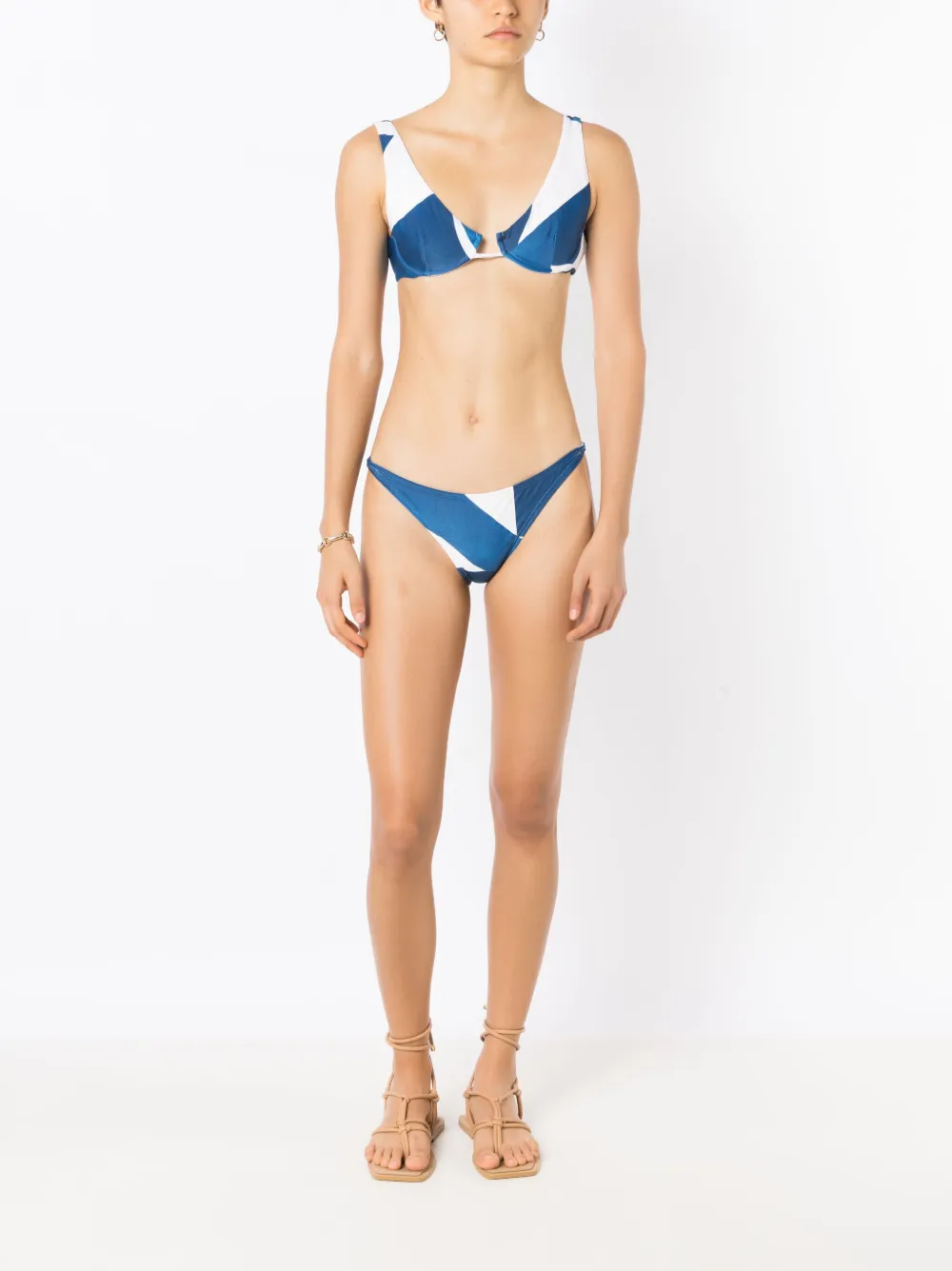 Stretch design, abstract patroon, beugelbeha en sluiting aan de achterkant. Zwemkleding moet over je eigen kleding worden aangepast..