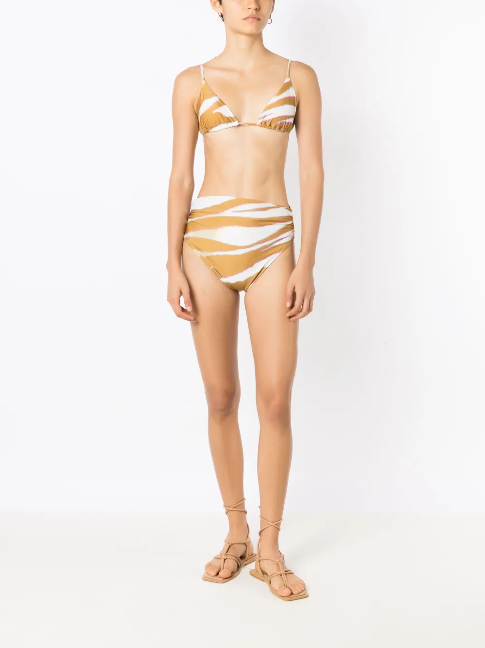Stretch design, abstract patroon, triangel cup, verstelbare schouderbandjes en striksluiting aan de achterkant. Zwemkleding moet over je eigen kleding worden aangepast..