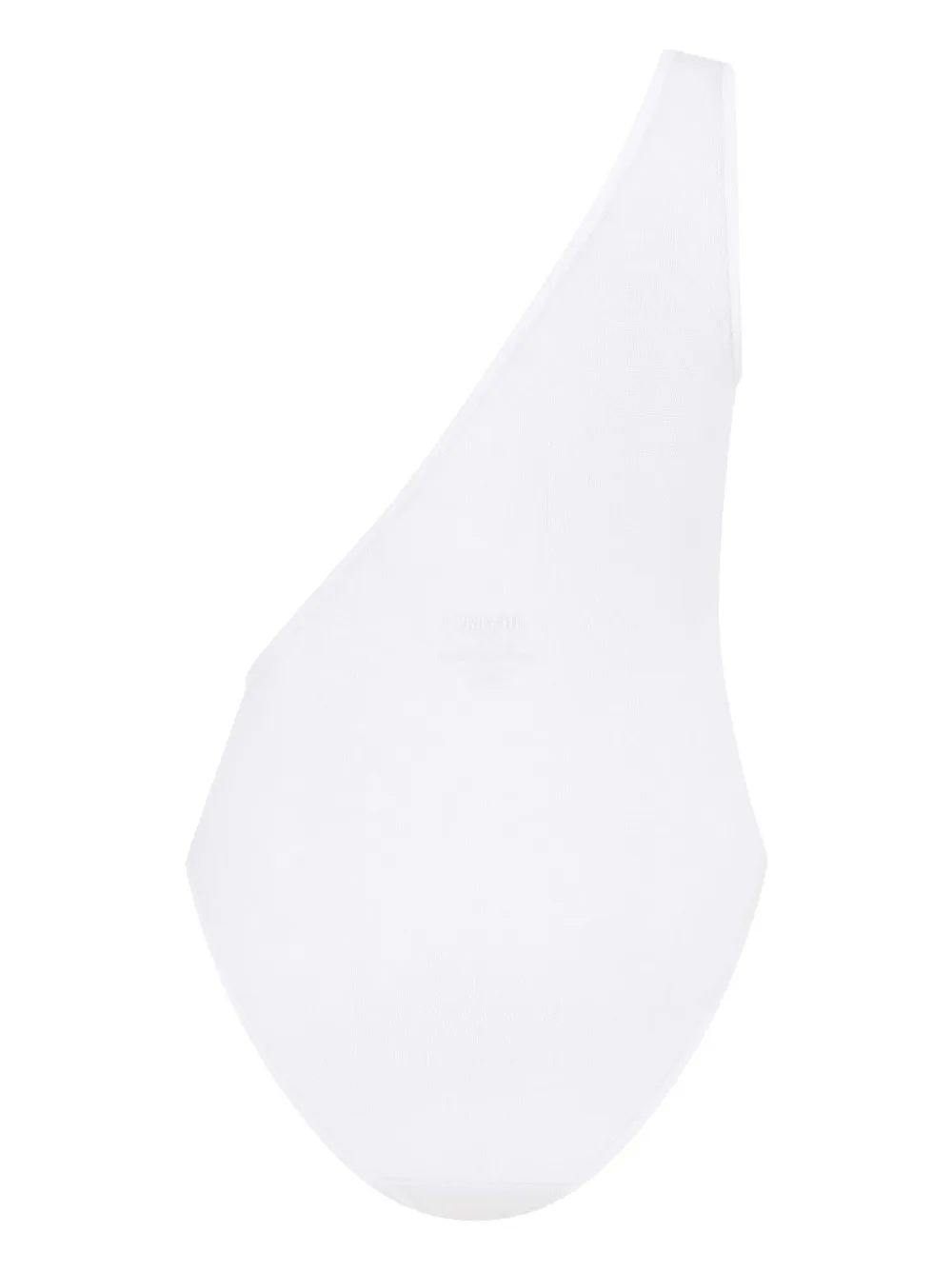 wit gerecyclede polyamideblend stretch design asymmetrische schouder Zwemkleding moet over je eigen kleding worden aangepast.