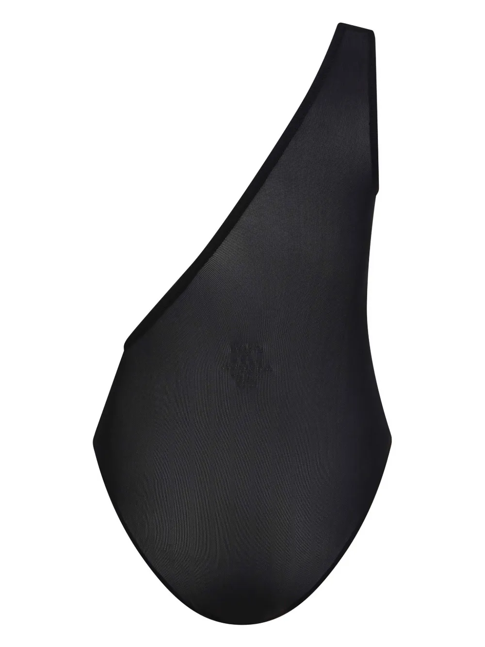 zwart gerecyclede polyamideblend stretch design mesh design asymmetrische schouder asymmetrisch design Zwemkleding moet over je eigen kleding worden aangepast.