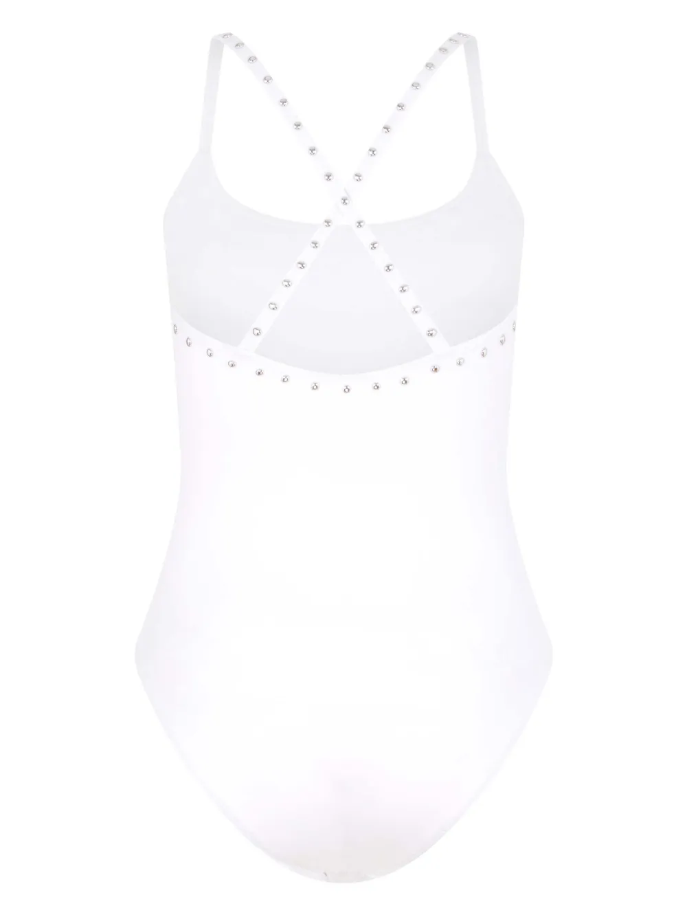 wit diepe ronde hals gekruiste bandjes aan de achterkant Zwemkleding moet over je eigen kleding worden aangepast.