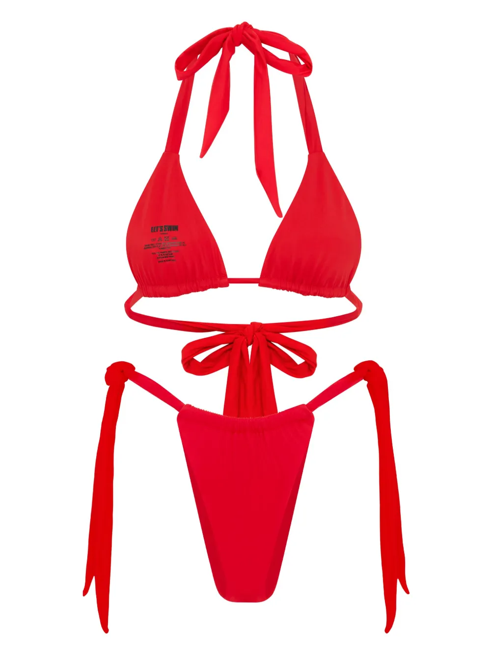 rood gerecyclede polyamideblend stretch design UV-bescherming striksluiting high waist Braziliaanse stijl Zwemkleding moet over je eigen kleding worden aangepast.