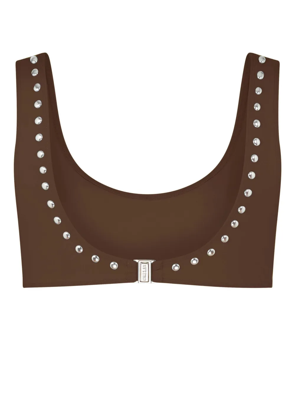 chocoladebruin sluiting aan de achterkant ronde hals open rug Zwemkleding moet over je eigen kleding worden aangepast.