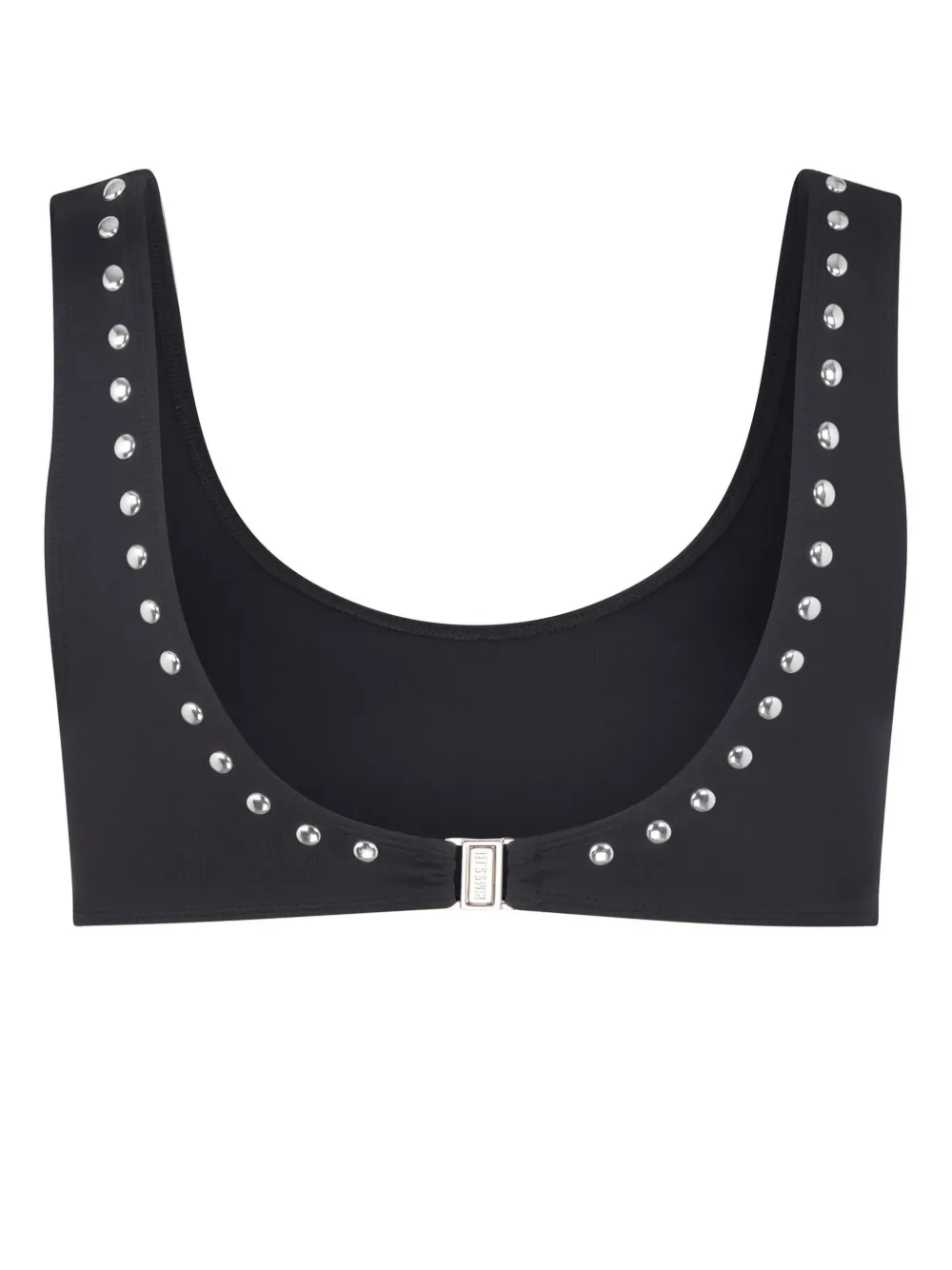 zwart sluiting aan de achterkant ronde hals open rug Zwemkleding moet over je eigen kleding worden aangepast.