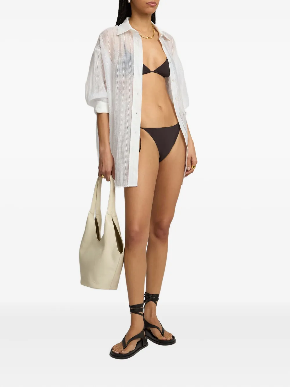 bruin triangelvormige top bikinislip met strikken aan de zijkant Zwemkleding moet over je eigen kleding worden aangepast.