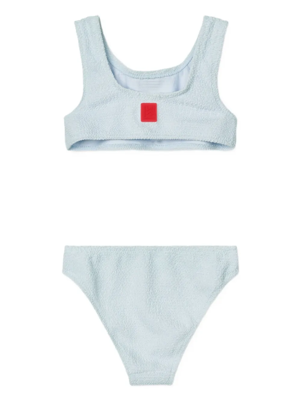 lichtblauw elastische tailleband diepe ronde hals mouwloos Zwemkleding moet over je eigen kleding worden aangepast.
