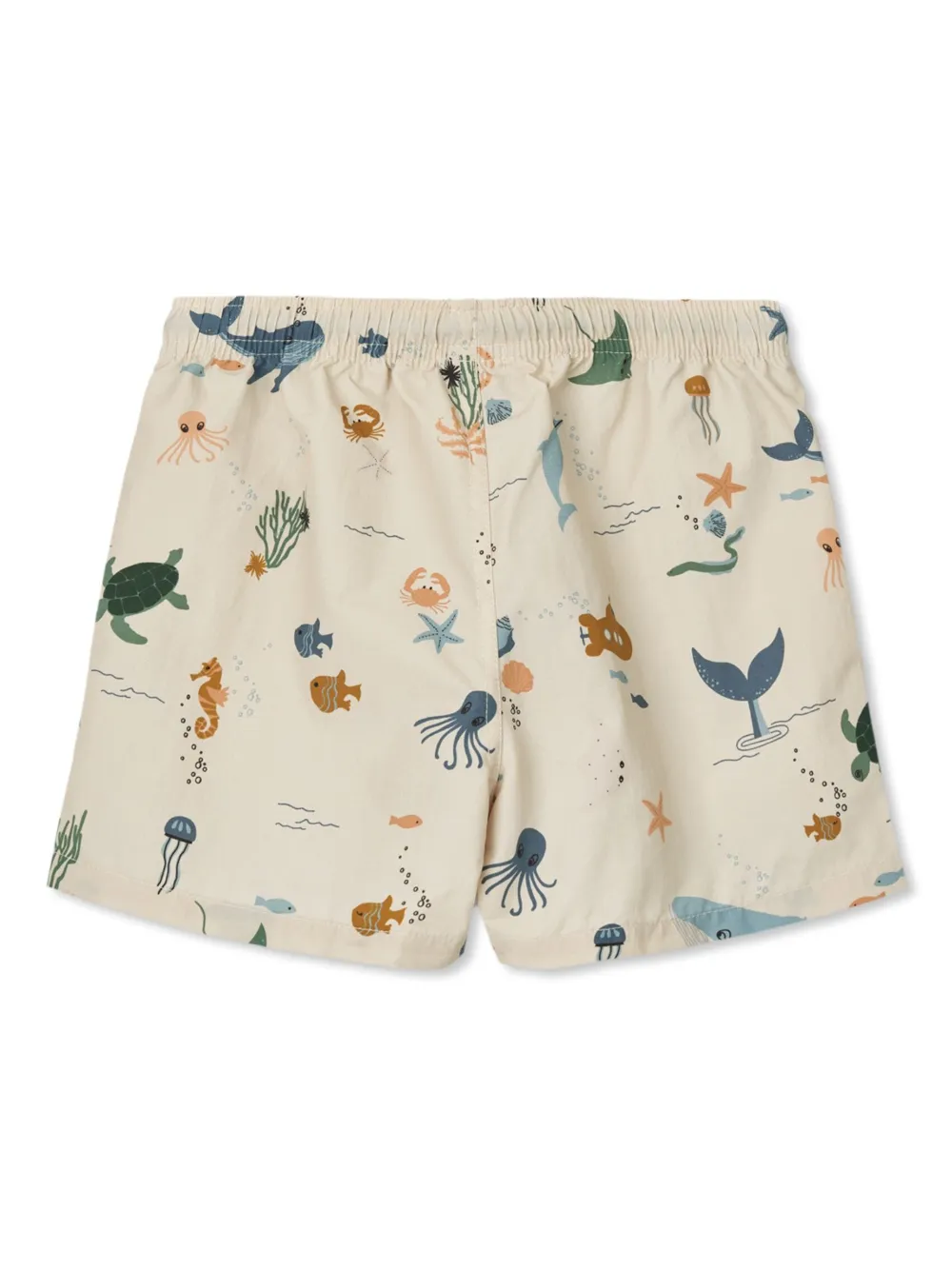 gebroken wit elastische tailleband met trekkoord grafische print Zwemkleding moet over je eigen kleding worden aangepast.