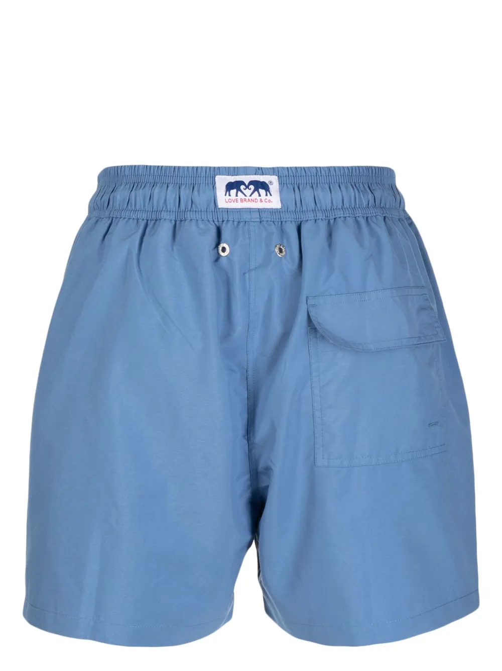 Poederblauw, gerecycled polyester, logopatch aan de achterkant, elastische tailleband, metalen ringlets, achterzak met klep en trekkoordsluiting bij de taille. Zwemkleding moet over je eigen kleding worden aangepast..