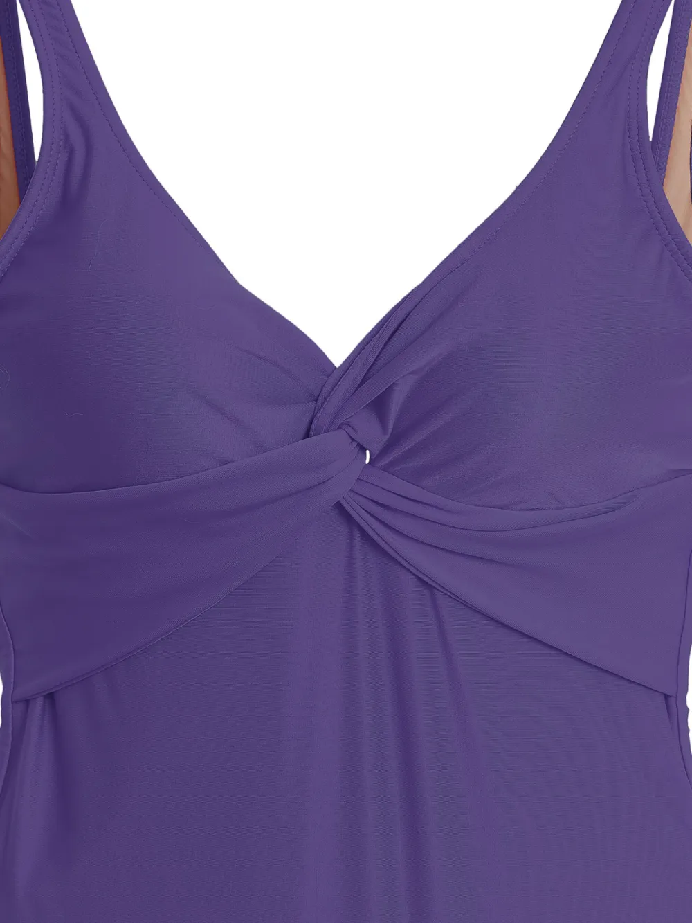 amarant paars gedraaide details V-hals open rug mouwloos Zwemkleding moet over je eigen kleding worden aangepast.