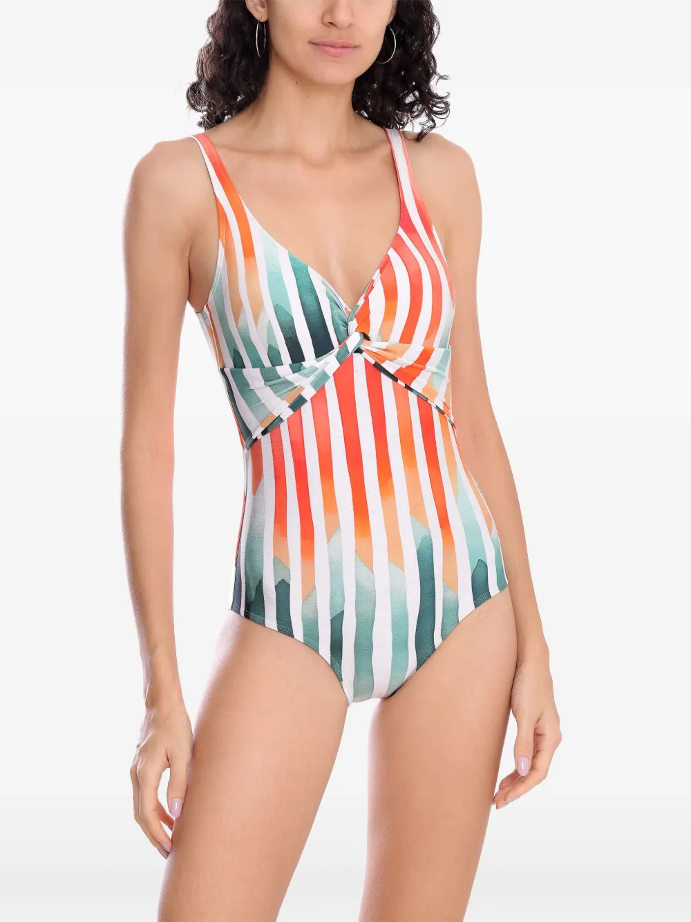 wit/veelkleurig V-vormige watervalhals dunne schouderbandjes lage rug Zwemkleding moet over je eigen kleding worden aangepast.