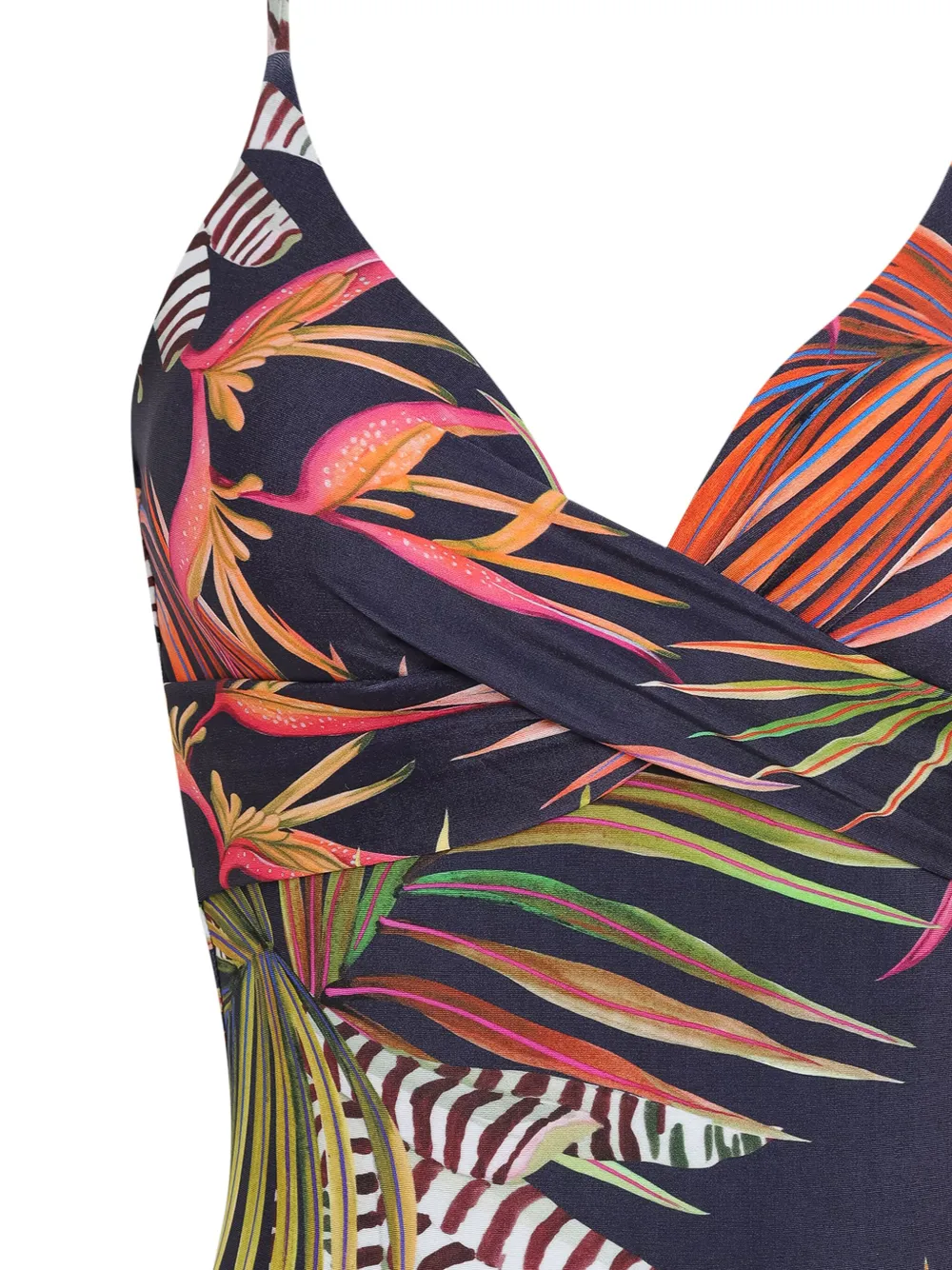 marineblauw gespsluiting verstelbare spaghettibandjes V-hals Zwemkleding moet over je eigen kleding worden aangepast.