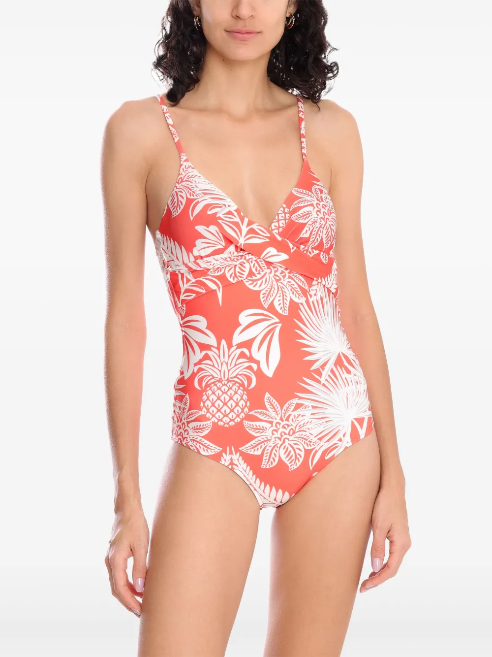 oranje haaksluiting aan de achterkant verstelbare schouderbandjes uitgesneden detail Zwemkleding moet over je eigen kleding worden aangepast.
