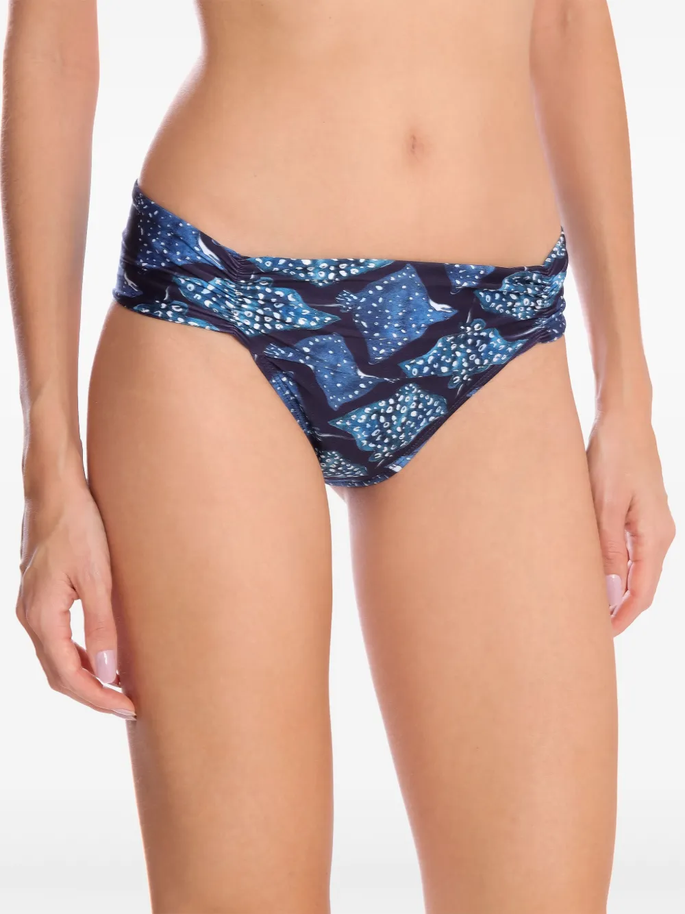 blauw elastische tailleband all-over grafische print geplooide details Zwemkleding moet over je eigen kleding worden aangepast.