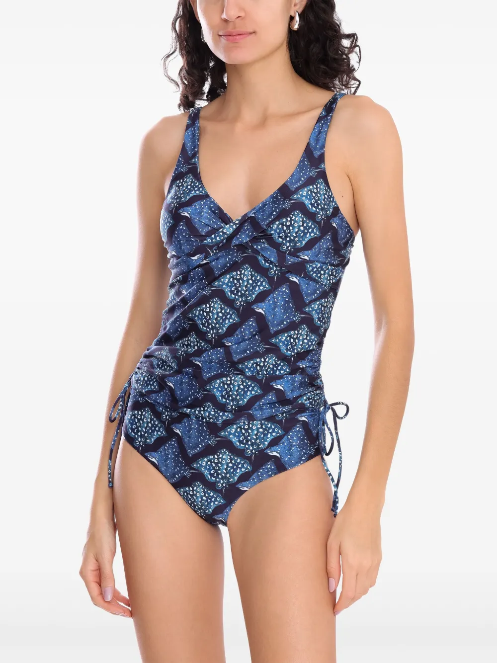 blauw trekkoordsluiting aan de zijkant verstelbare schouderbandjes gedraaide details Zwemkleding moet over je eigen kleding worden aangepast.