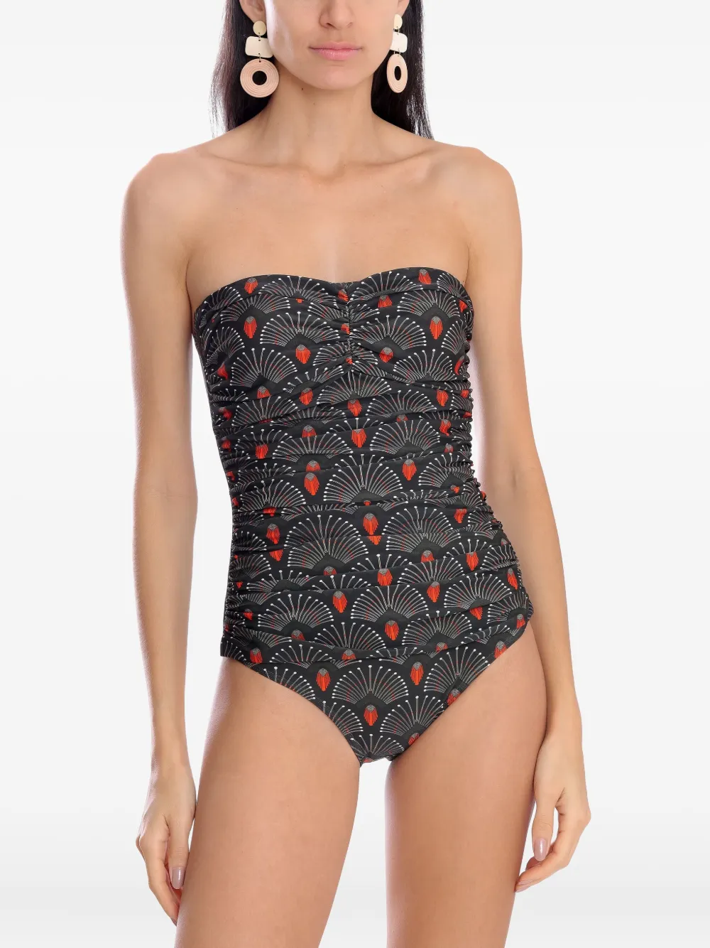 grijs bloemenprint ruchedetails strapless design afneembaar halskoord interne ondersteuningsstructuur Zwemkleding moet over je eigen kleding worden aangepast.