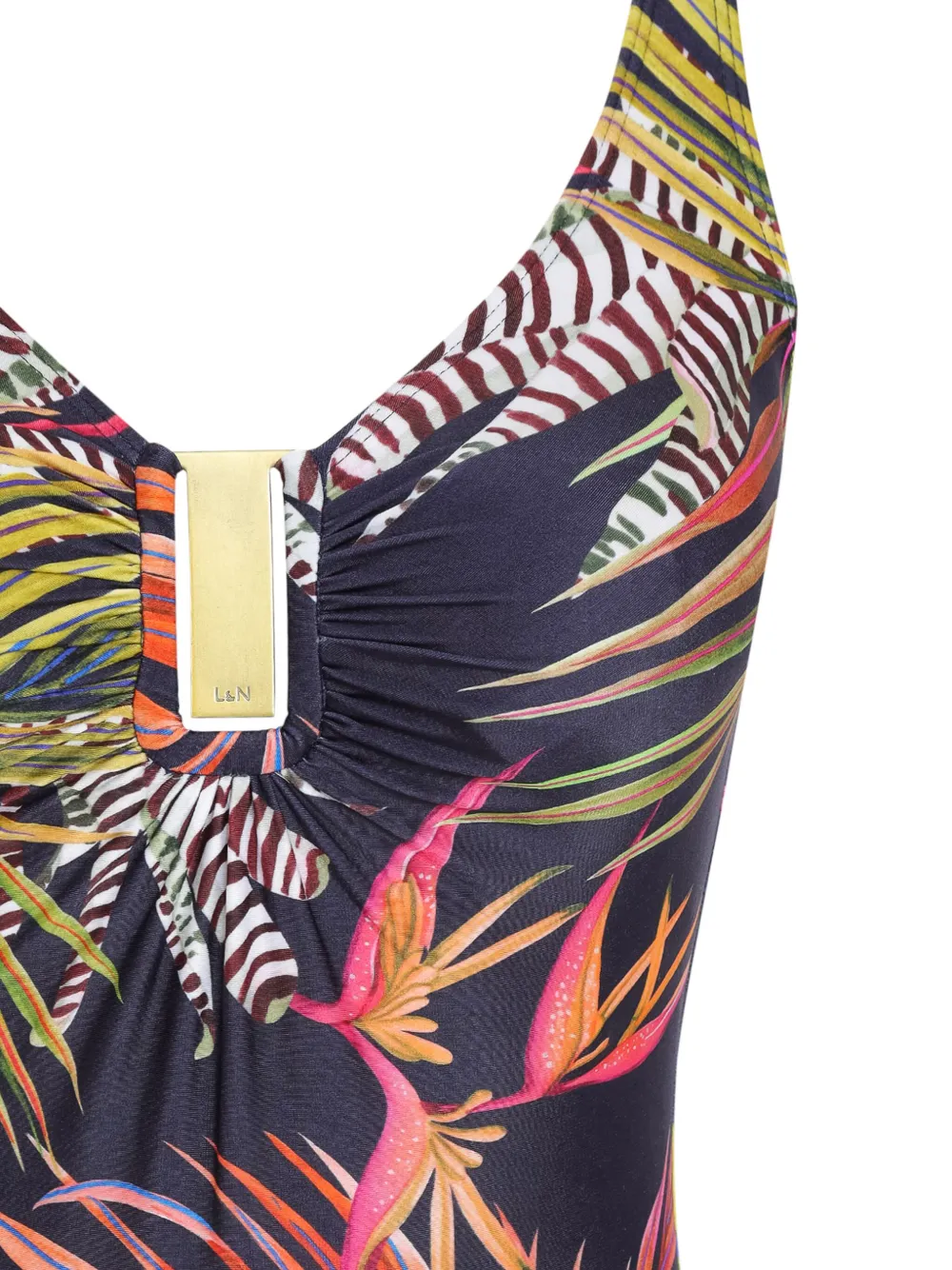 marineblauw V-hals laag uitgesneden rug gesmockte details Zwemkleding moet over je eigen kleding worden aangepast.
