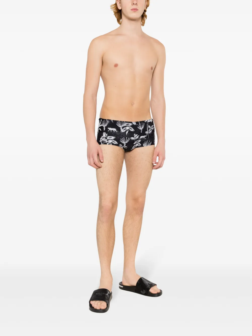 zwart/wit all-over grafische print stretch design low waist instapmodel Zwemkleding moet over je eigen kleding worden aangepast.