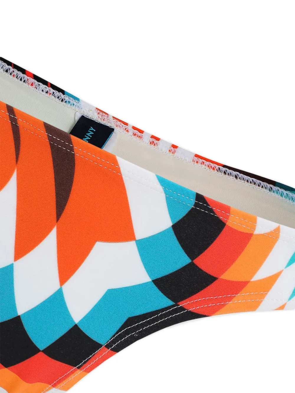 oranje/blauw/wit geometrisch patroon elastische tailleband logopatch aan de binnenkant instapmodel Zwemkleding moet over je eigen kleding worden aangepast.