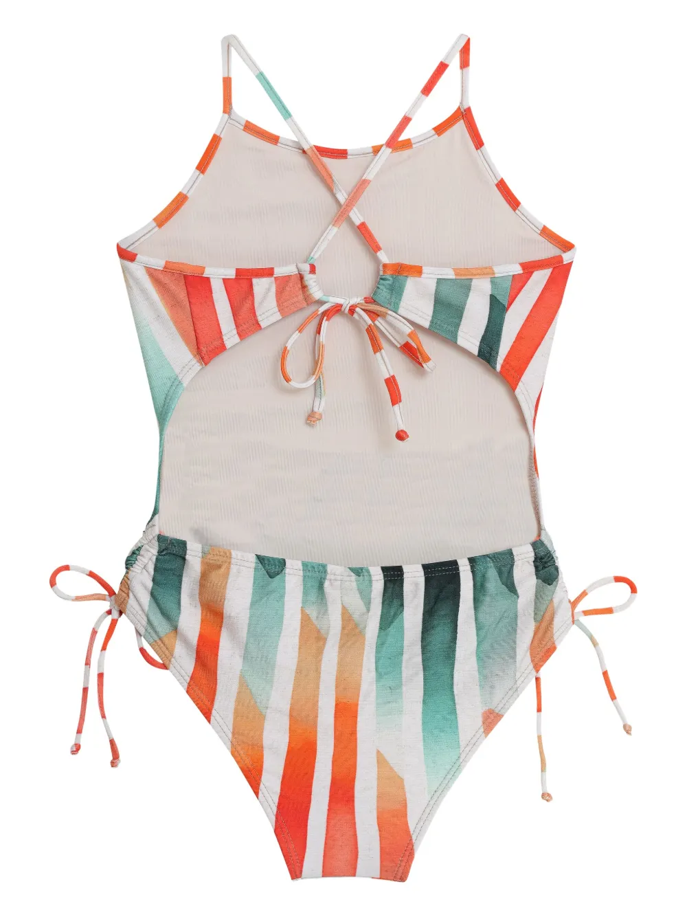 oranje/veelkleurig gestreept detail striksluiting aan de achterkant striksluiting aan de zijkant Zwemkleding moet over je eigen kleding worden aangepast.