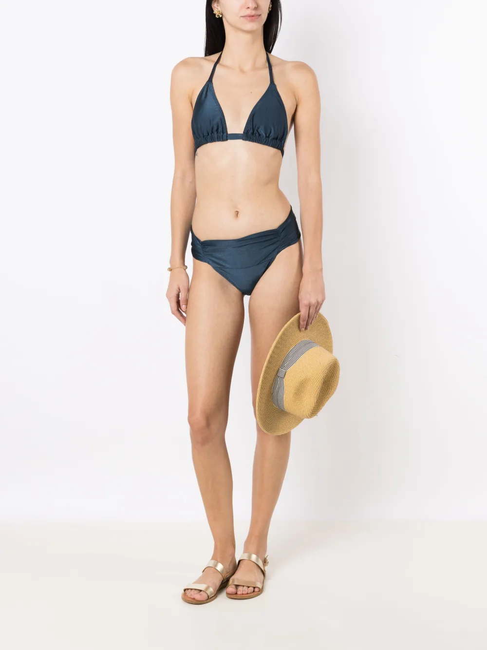 Nachtblauw, stretch design, triangel cup, striksluiting aan de achterkant en verstelbare pasvorm. Zwemkleding moet over je eigen kleding worden aangepast..