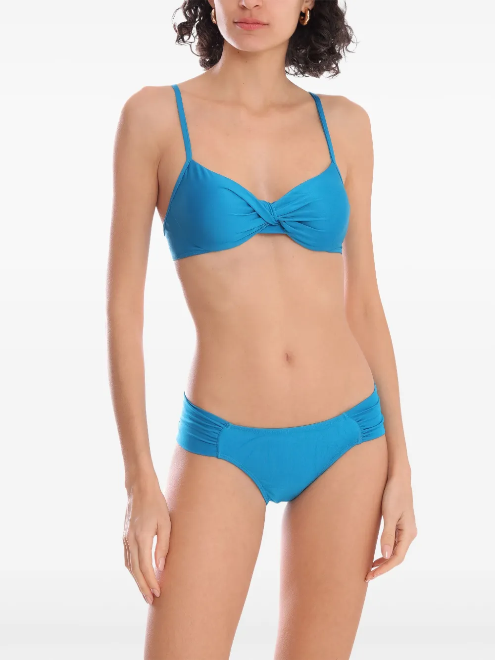 aqua blauwBikinitop gedraaide details sluiting aan de achterkant sweetheart-hals mouwloosbikinibroek elastische tailleband Zwemkleding moet over je eigen kleding worden aangepast.