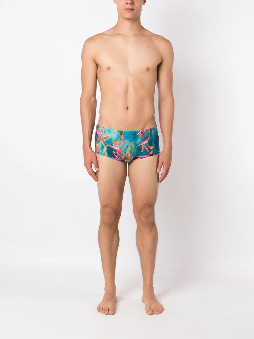 Aqua blauw, veelkleurig, stretch design, all-over bloemenprint, elastische tailleband en slip-on stijl. Zwemkleding moet over je eigen kleding worden aangepast..