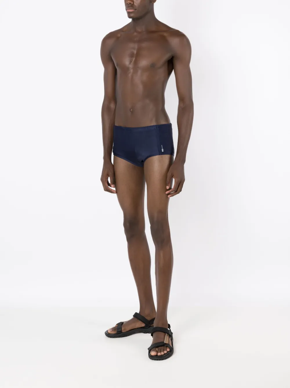 Marineblauw, aqua blauw, stretch design, logoprint op de voorkant en elastische tailleband. Zwemkleding moet over je eigen kleding worden aangepast..