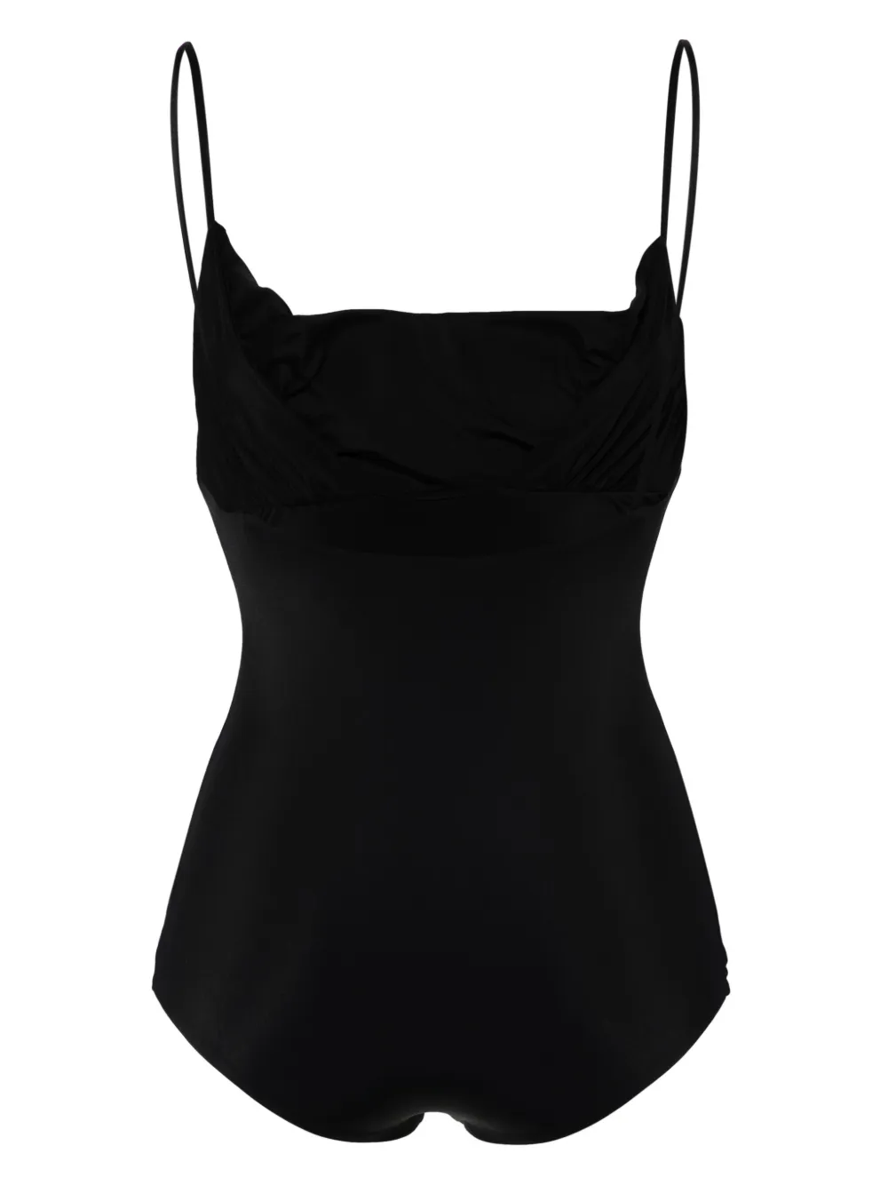 zwart stretch design watervalhals spaghettibandjes lage rug klassiek geslepen onderkant volledige voering Zwemkleding moet over je eigen kleding worden aangepast.