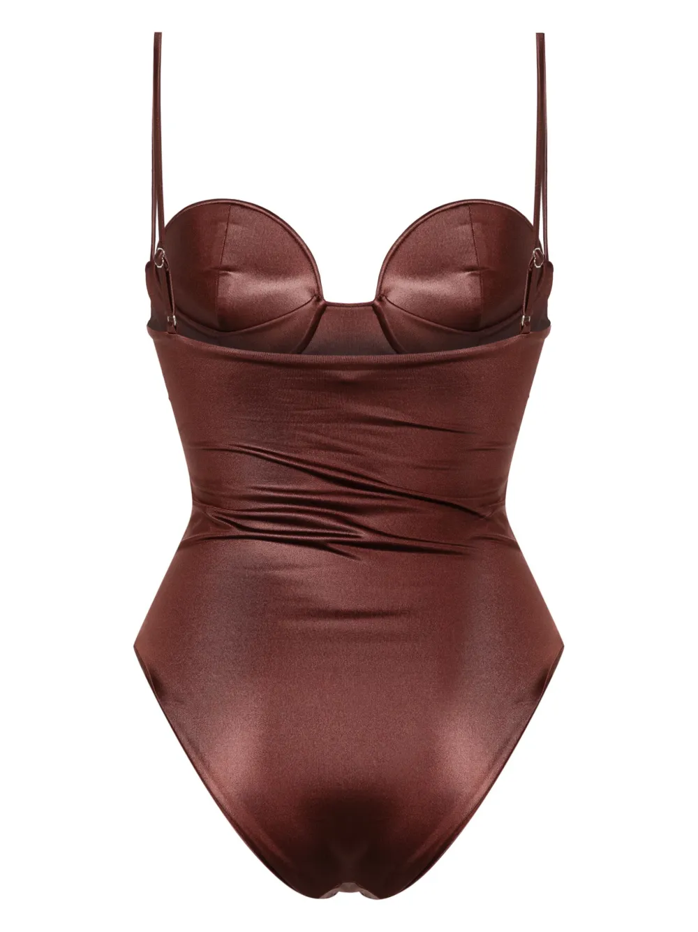 chocoladebruin stretch design sweetheart-hals ingenaaide beugel bh slip-on stijl verstelbare spaghettibandjes hoog uitgesneden volledige voering Zwemkleding moet over je eigen kleding worden aangepast.
