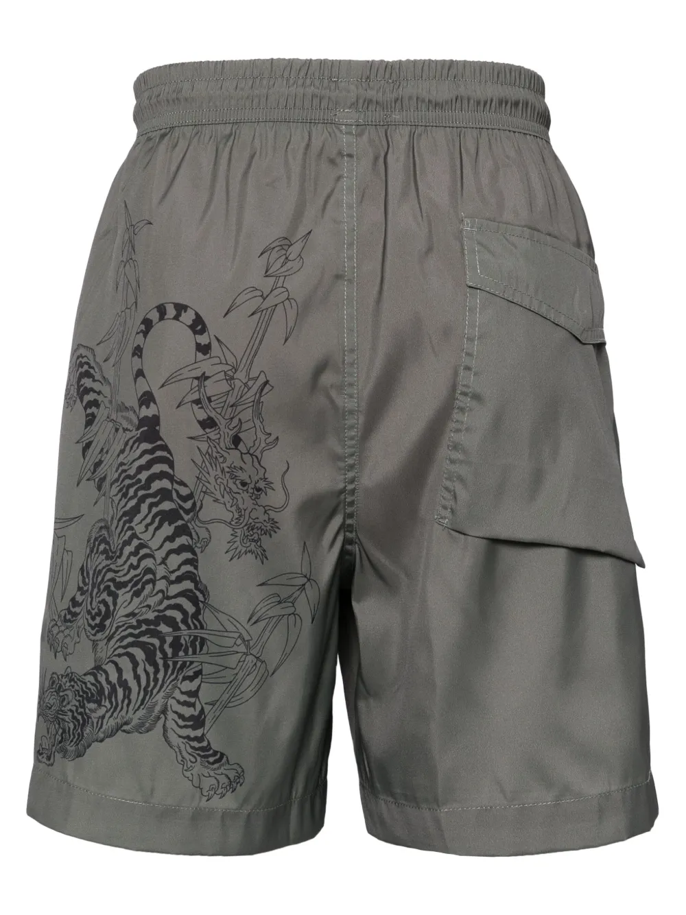 olijfgroen grafische print aan de achterkant rechte pijpen trekkoordsluiting klepzak aan de achterkant Zwemkleding moet over je eigen kleding worden aangepast.
