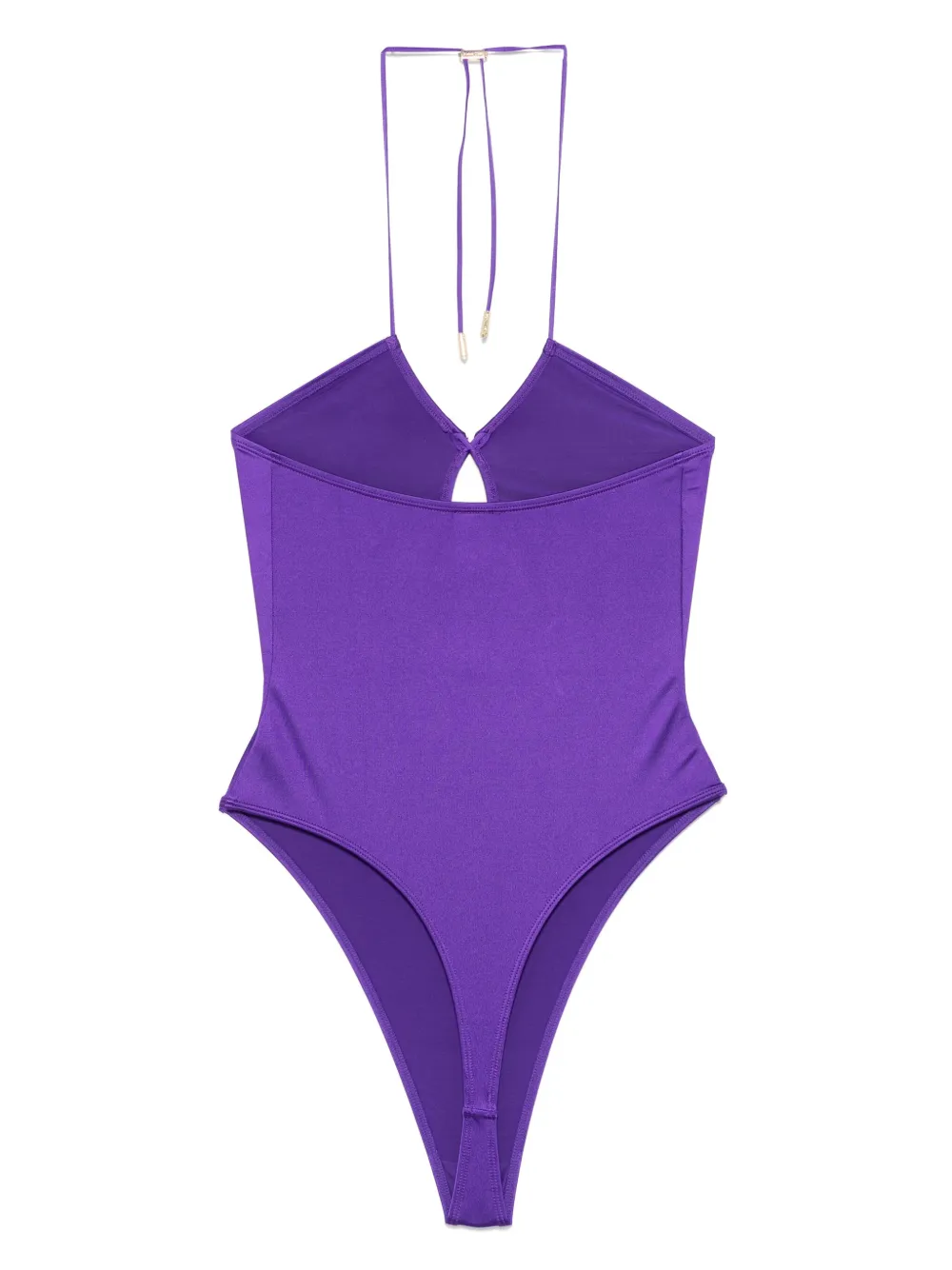 violetpaars halternek striksluiting uitgesneden detail string design Zwemkleding moet over je eigen kleding worden aangepast.