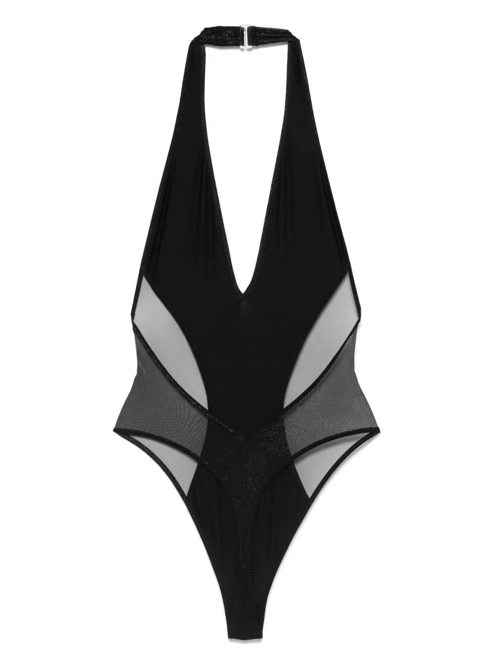 zwart haaksluiting aan de achterkant halternek string design Zwemkleding moet over je eigen kleding worden aangepast.