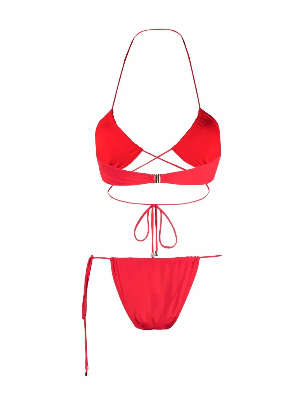 Gekruiste band, gespsluiting aan de achterkant, halternek, gespsluiting aan de achterkant, mid waist, gesmokte details en striksluiting aan de zijkant. Zwemkleding moet over uw eigen kleding worden aangepast. Doe dit niet als u eenmaal het water in springt.