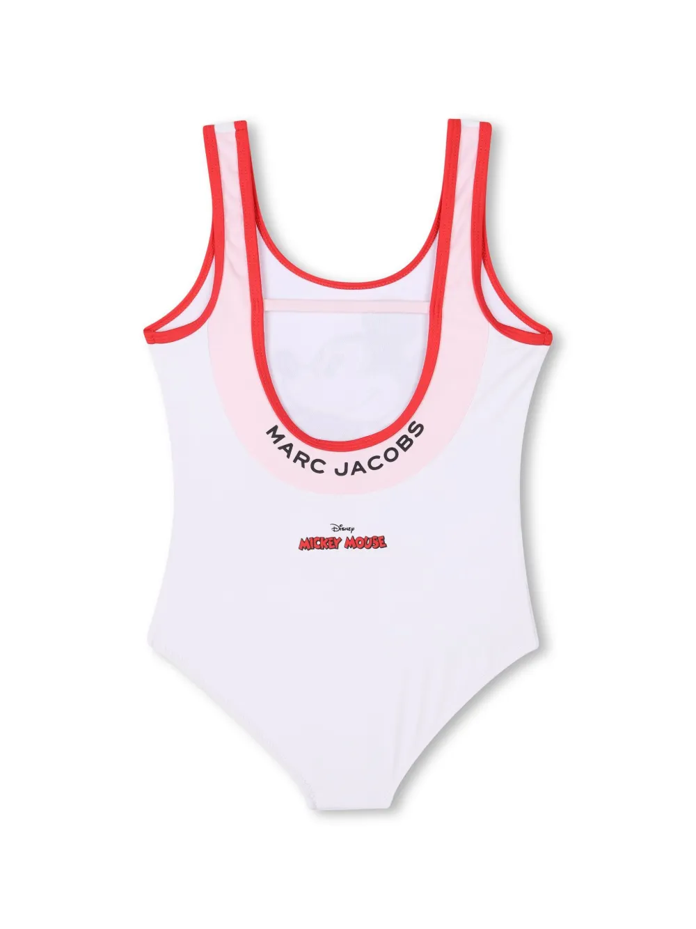 wit badpak design stripprint contrasterende afwerking diepe ronde hals brede schouderbandjes logoprint op de achterkant lage rug Zwemkleding moet over je eigen kleding worden aangepast.