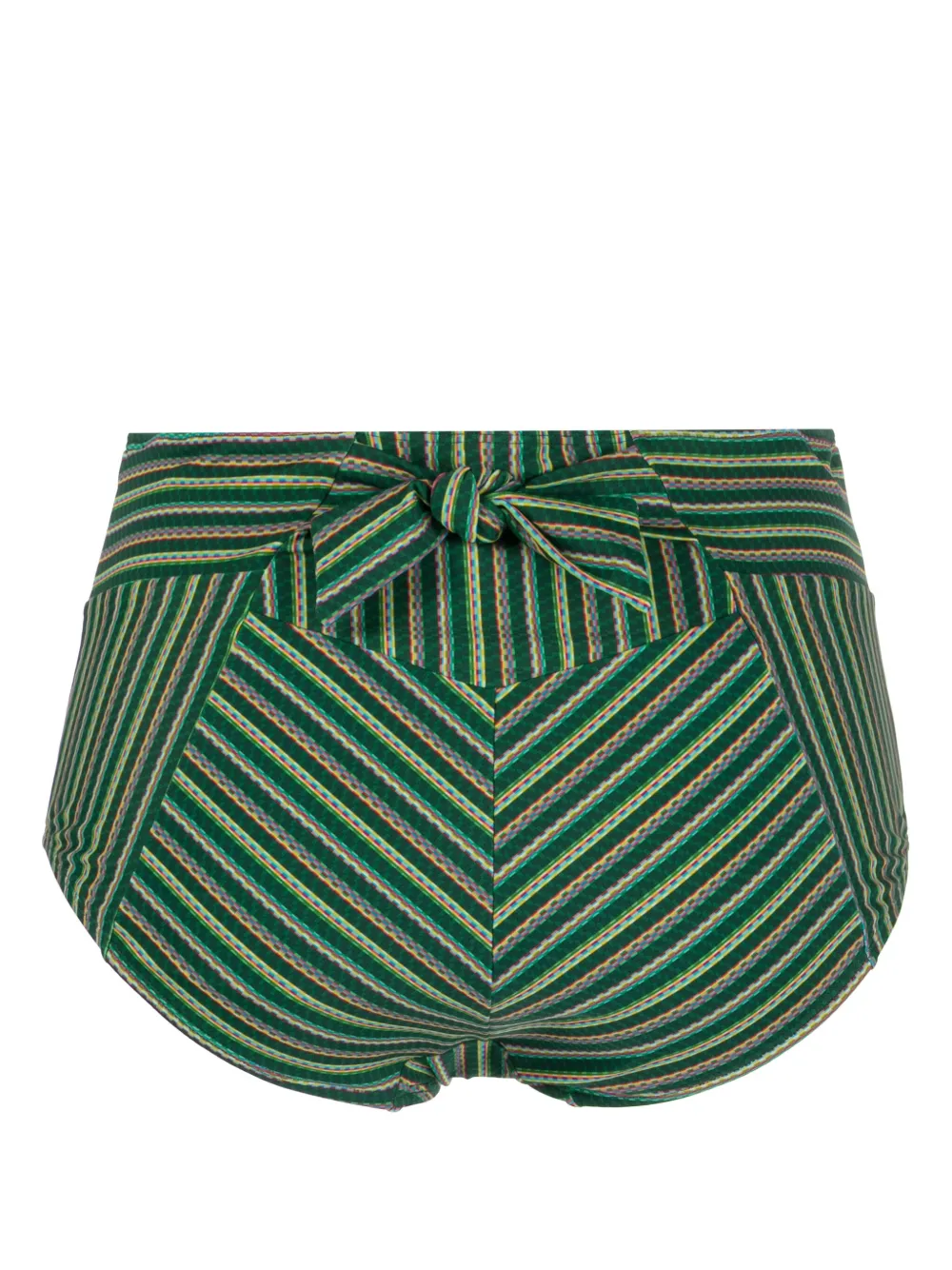 Smaragdgroen, veelkleurig, gerecyclede nylonmix, stretch design, gestreept patroon, high-waist en striksluiting aan de achterkant. Zwemkleding moet over je eigen kleding worden aangepast.. .