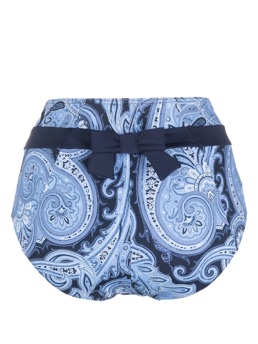 Aqua blauw, marineblauw, gerecyclede nylonmix, stretch design, paisley-print, strikdetail, high-waist en slip-on stijl. Zwemkleding moet over je eigen kleding worden aangepast.. .