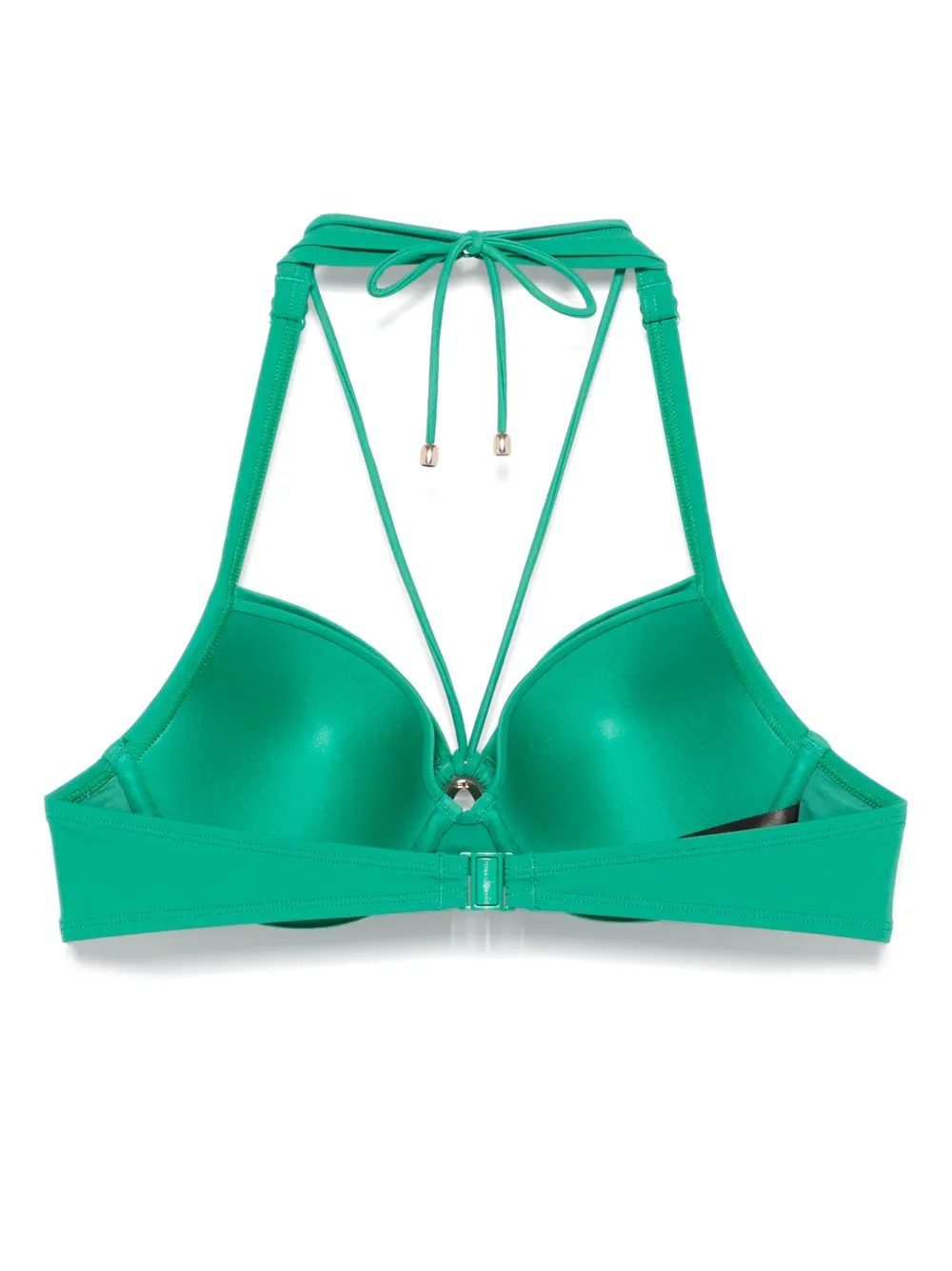 smaragdgroen gerecyclede nylonmix haaksluiting aan de achterkant gewatteerd design push-up design halternek uitgesneden detail volledige voering Zwemkleding moet over je eigen kleding worden aangepast.
