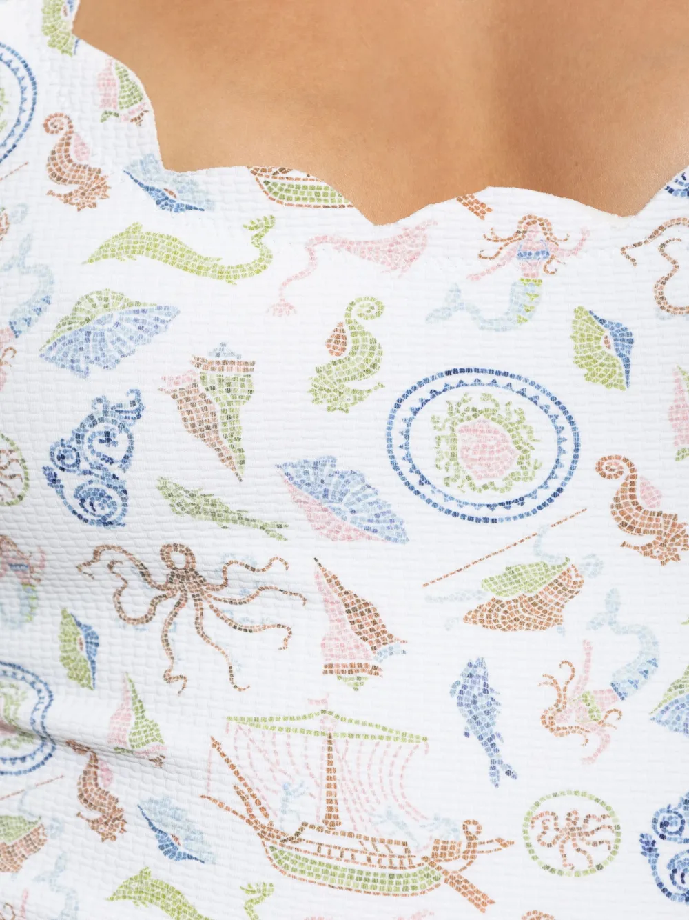 wit nautische print geschulpte afwerking Zwemkleding moet over je eigen kleding worden aangepast.