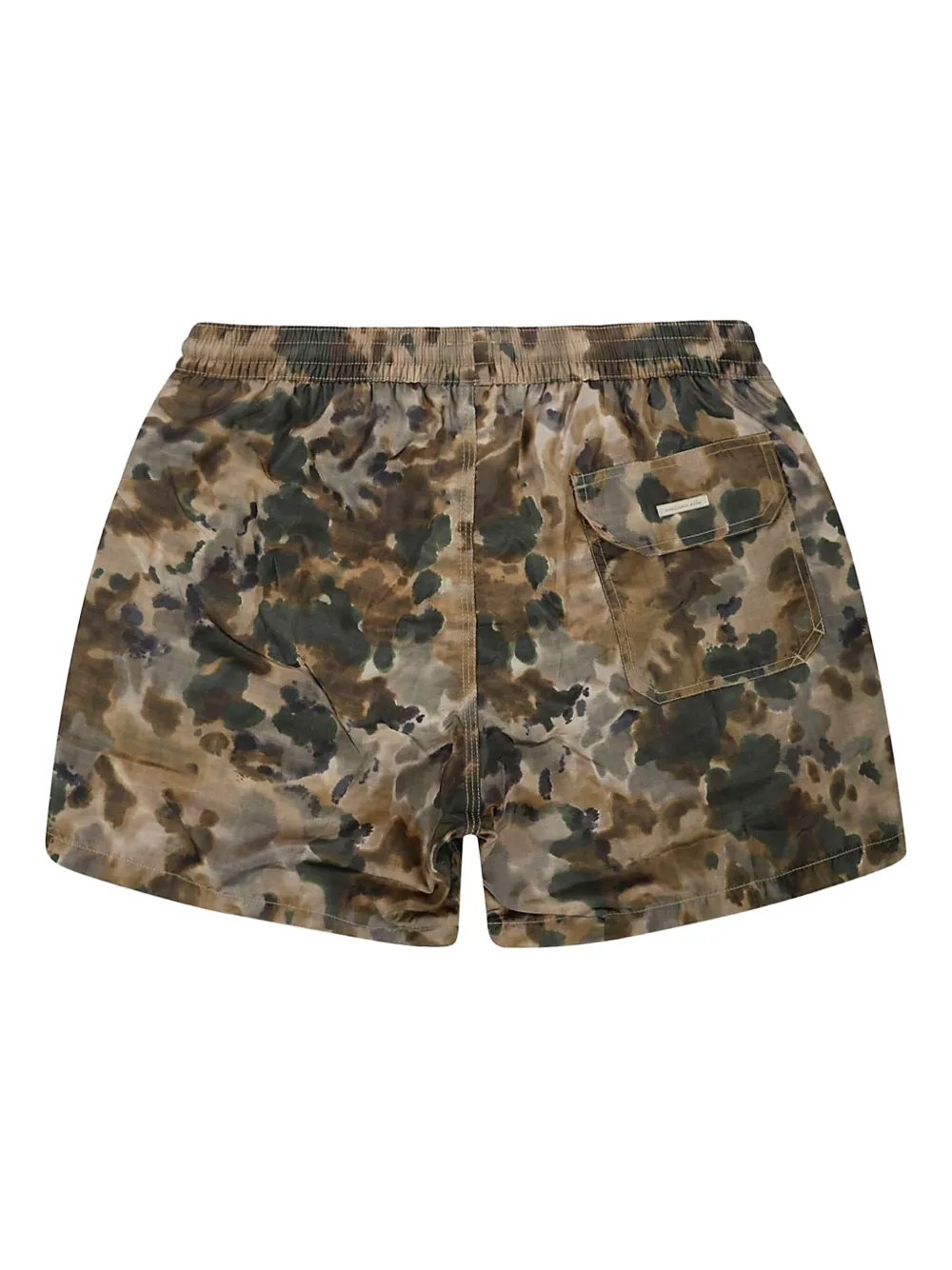 legergroen camouflageprint trekkoordsluiting zijzakken elastische tailleband Zwemkleding moet over je eigen kleding worden aangepast.