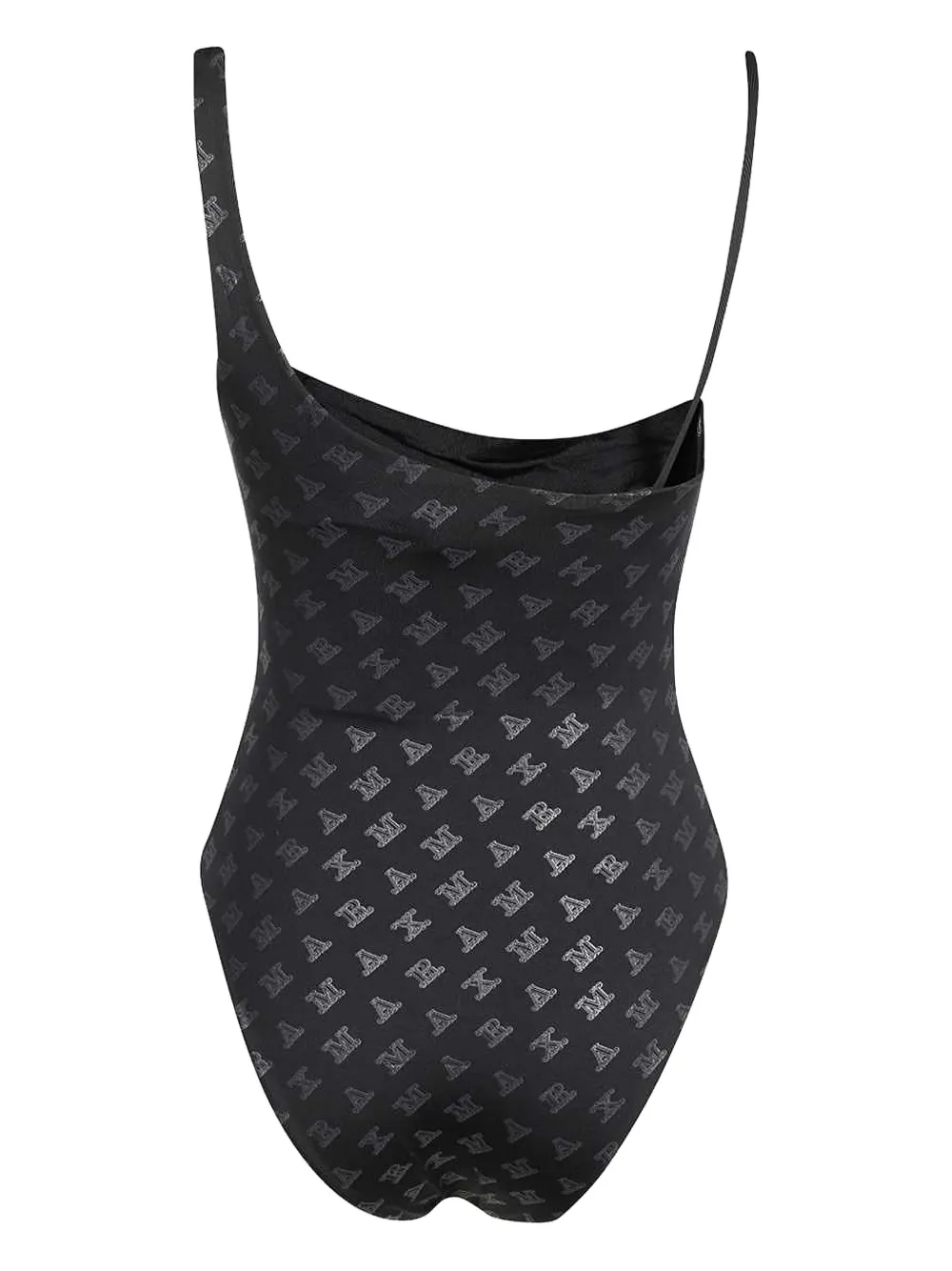 zwart allover logoprint enkele schouder asymmetrische hals Zwemkleding moet over je eigen kleding worden aangepast.