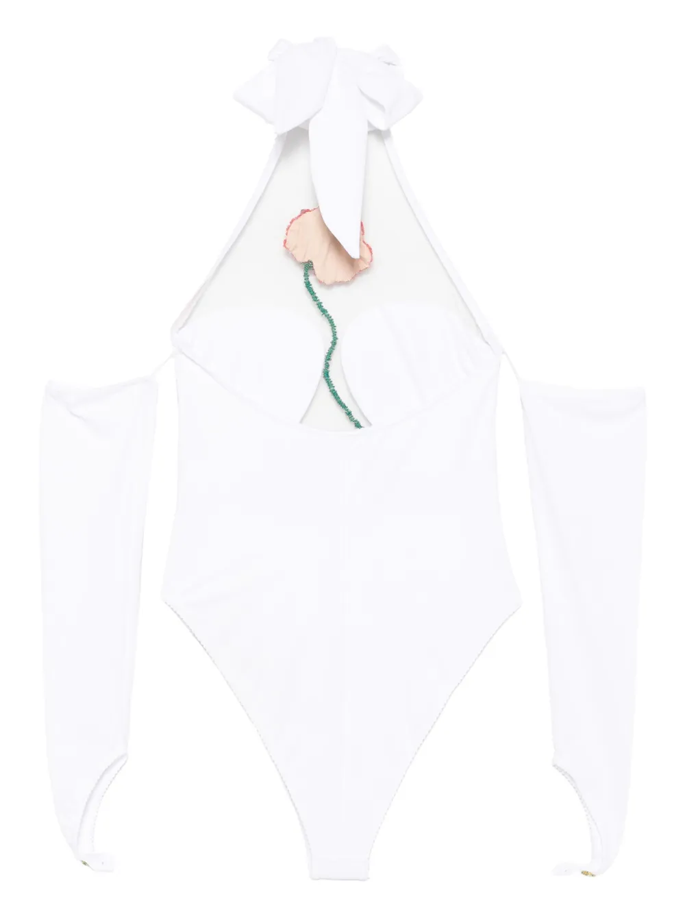 wit bloemen met kralen off-shoulder mouwen hoge hals mesh vlakken Zwemkleding moet over je eigen kleding worden aangepast.