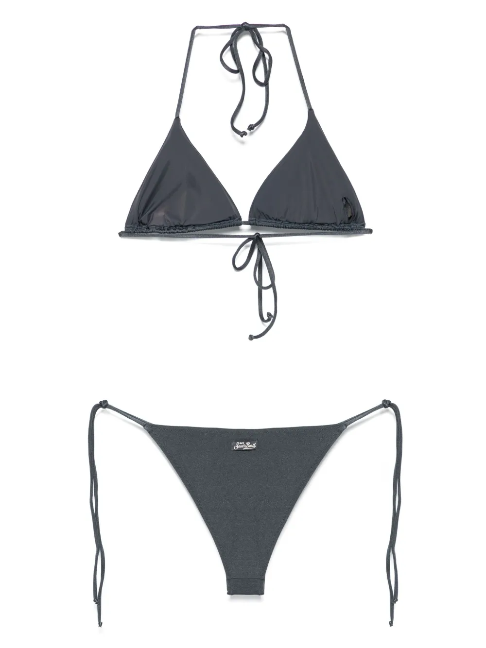 donkergrijs verfraaid met stras triangelvormige top striksluiting aan de achterkant low waist bikinibroek gestrikte zijkanten Zwemkleding moet over je eigen kleding worden aangepast.