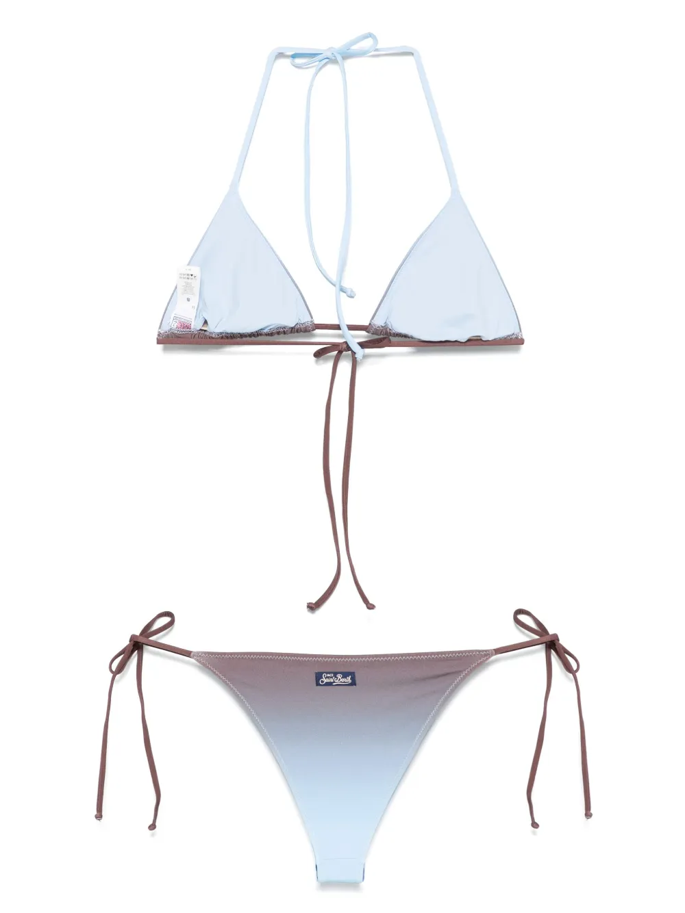 lichtblauw striksluiting aan de achterkant halternek striksluiting bikinibroek met striksluiting aan de zijkant Zwemkleding moet over je eigen kleding worden aangepast.